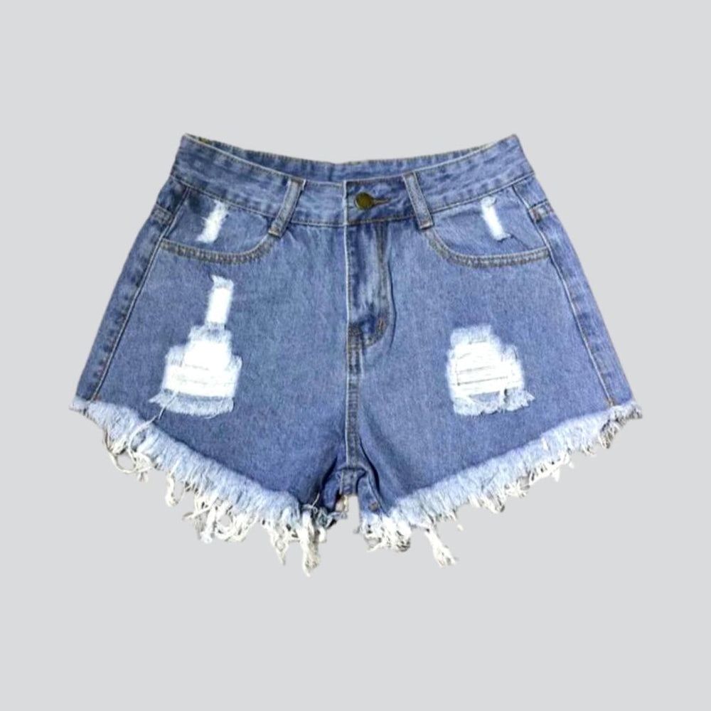 Be the trendsetter with our 2023 Summer Collection Y2K Distressed Women's Jean Shorts! Crafted with premium quality denim. these mid-waist. straight-fit shorts feature a zippered and button closure to provide the perfect blend of comfort and durability. With a design inspired by the season's hottest trends. these shorts capture the zeitgeist of 2023's fashion panorama. while the intricate pattern embellishments add a layer of sophistication. making them a testament to luxury and class.