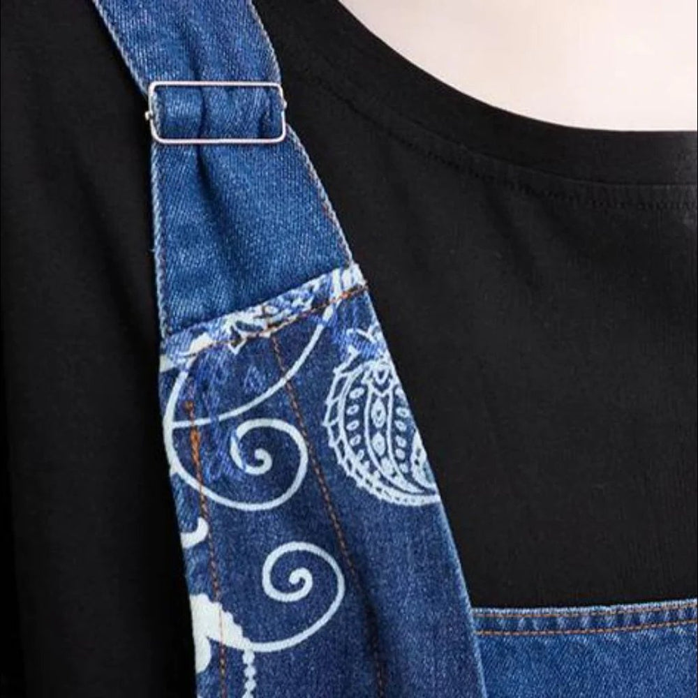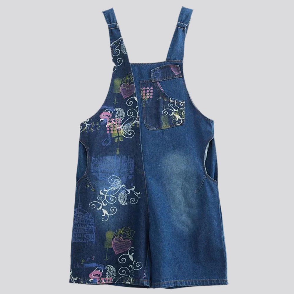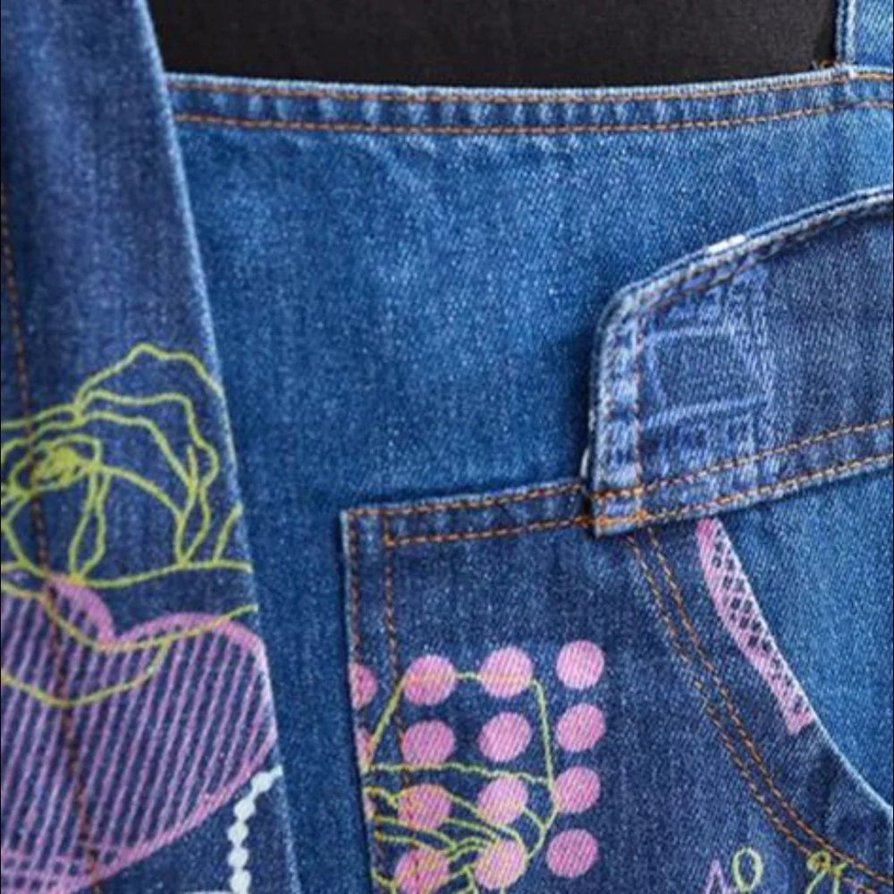 Introducing the 2023 Summer Collection Y2K Jean Romper for ladies a stylish. baggy. and medium wash style for a fashionable look that will never go out of style! Featuring a unique combination of sanded. painted. and Y2K details. this romper is sure to turn heads. Paired with suspenders closure. you'll be the center of attention with this statement piece.