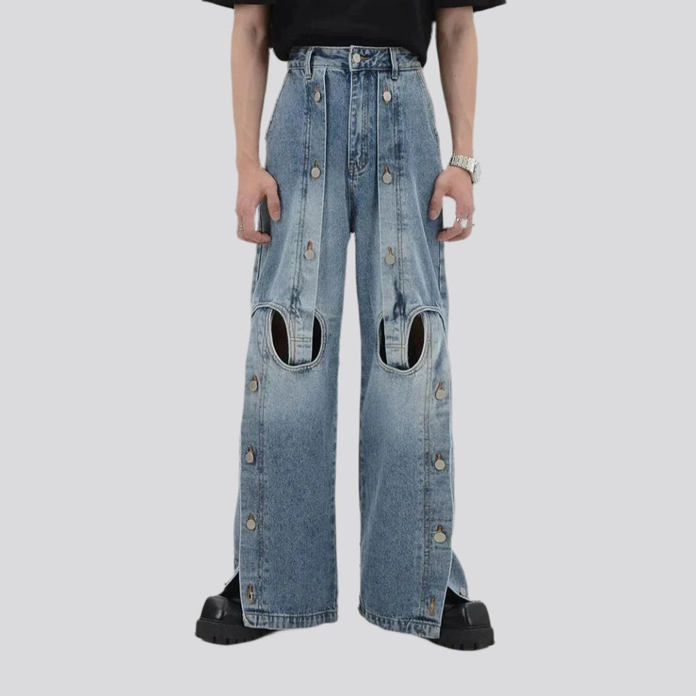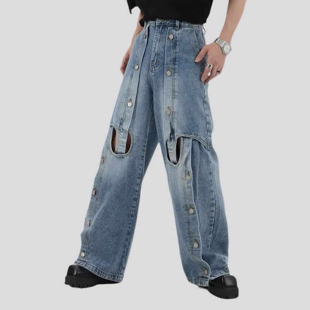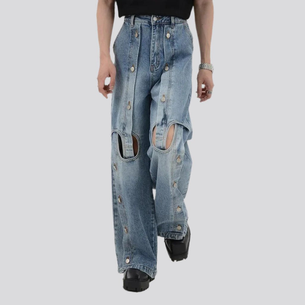 Take your look to the next level with these y2k style denim jeans. Show off your trend with the unique medium-waist fit. zipper & button closure and decorated detail. Step into the world of Y2K fashion and make a statement with these baggy. retro jeans. Be bold and stand out with our 2023 Autumn Collection!