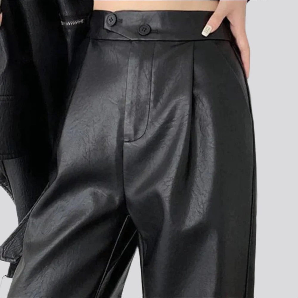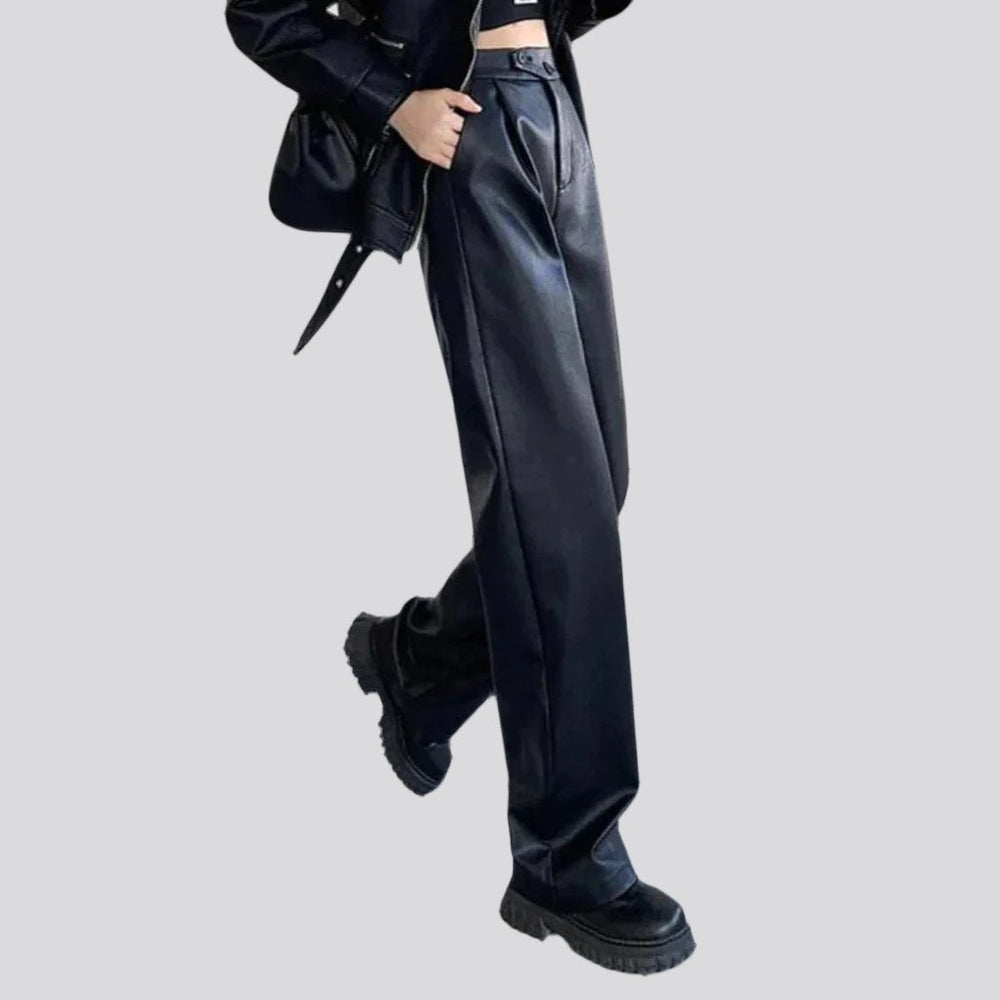 Inject classic glamour to your wardrobe with our 2023 Autumn-Winter Collection millennium style. pleated-waistline. wide leg denim pants! Made with luxe denim. this piece features a unique zipper & buttons closure. while the wax finish lends a subtle hint of vintage charm. Enjoy the perfect balance of bygone elegance and modern-day style with this exquisite ensemble!