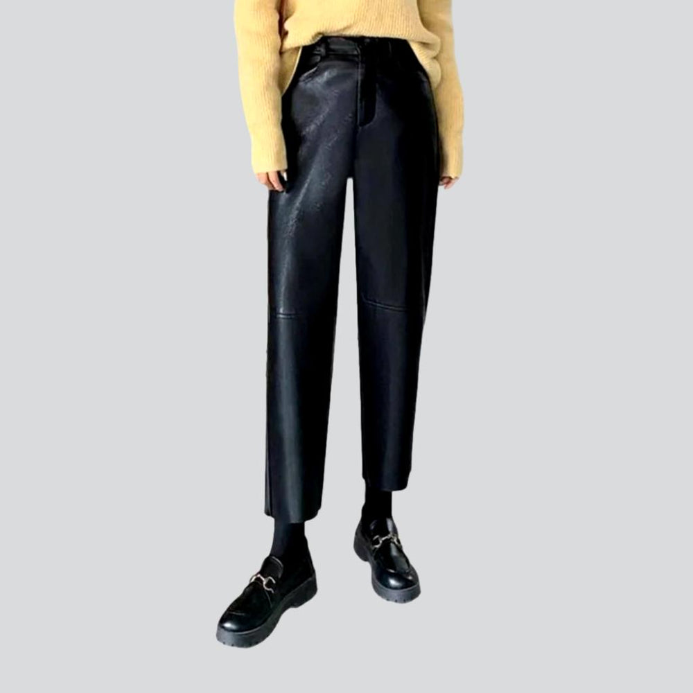The Y2K trend offers a unique look and these wide-leg jeans are the perfect way to express your individual vibe. The pu-coated coating adds a sheen to the denim fabric. giving these pants a chic look. The short length adds to the modernity of the jeans. making them a fashionable choice for any occasion.