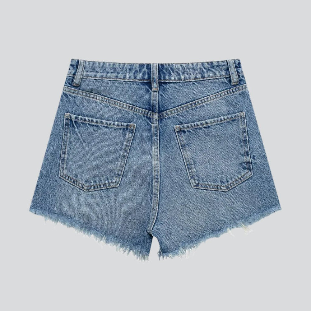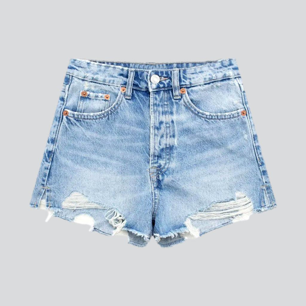Tapping into the style of yesteryear. these shorts are a classic enduring that will never go out of style. With a high waist and distressed design. these shorts are sure to level up any summer look. while the zipper and button closure ensure that they stay securely in place. Whether you're hitting the beach or going out for the night. these shorts are the perfect addition to your wardrobe.