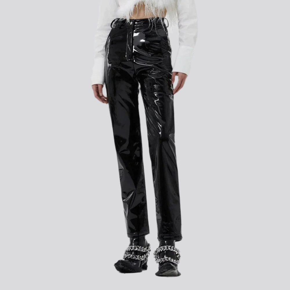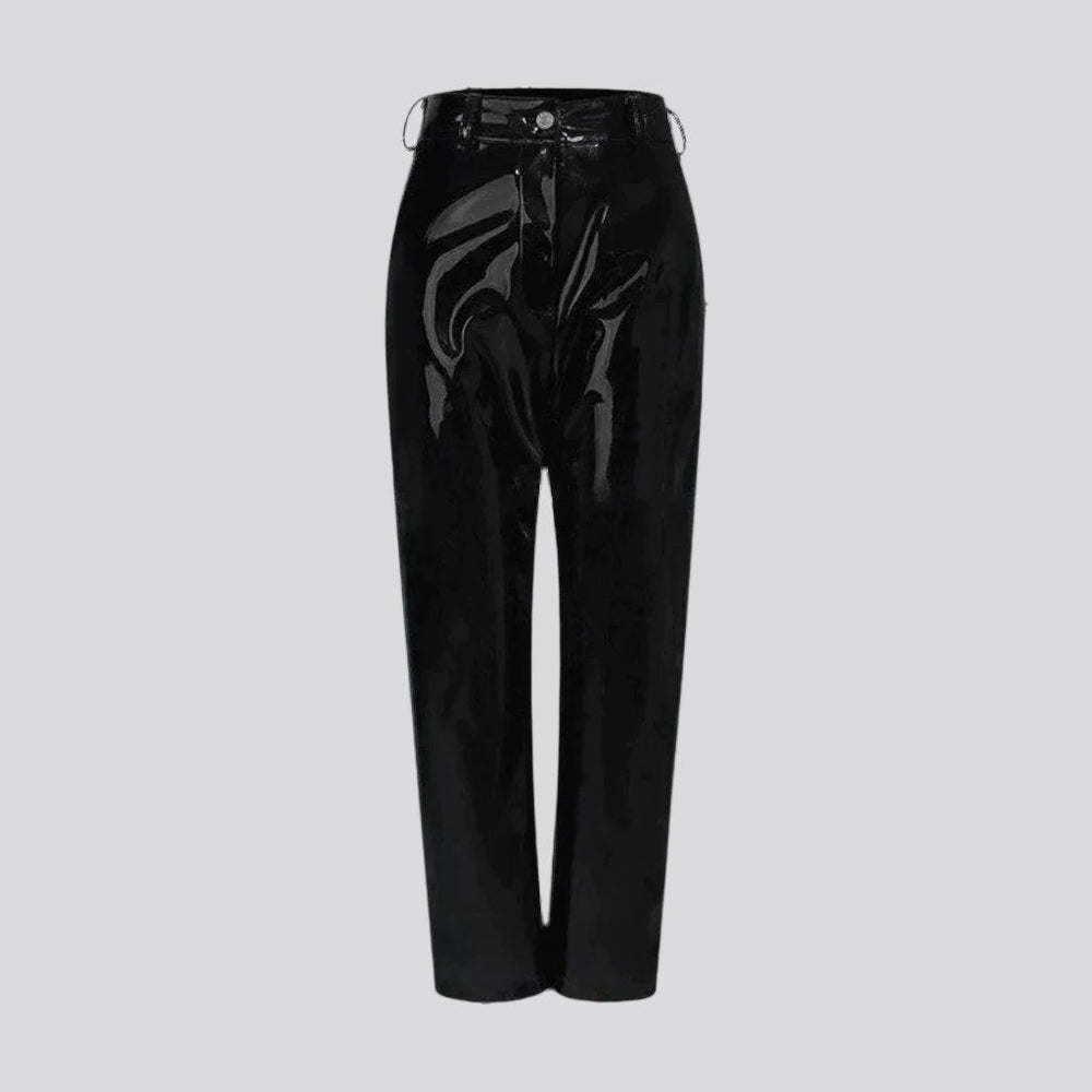 Make a statement this season with our 2023 Autumn-Winter Collection of Y2K Women's Shiny Jeans! Crafted from elevated-quality waxed denim. these straight-fit high-waist jeans are designed to fit your body like a second skin. The zipper and button closure ensures that you can always find the perfect fit. no matter what the occasion.