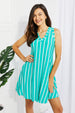 It's a well-known fact that vertical stripes add height! This vertical-striped skater dress is sleeveless and has a v-neckline. Fully equipped with pockets. this dress is all you need for an easy out-the-door 'fit.