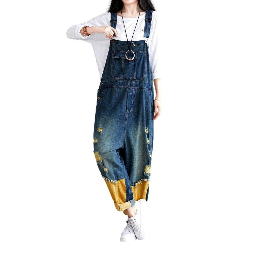 Put a unique spin on your street style with our yellow hem Women's Denim Jumpsuit from the 2023 Autumn Collection! Established yet modern. this jumpsuit is the perfect choice for a look that is both informal and fashion-forward.