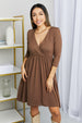 Stay cute. feminine. elegant and flattering at all times in this three-quarter sleeve mini dress. Featuring surplice neckline and pockets. this dress is ideal for all occasions.